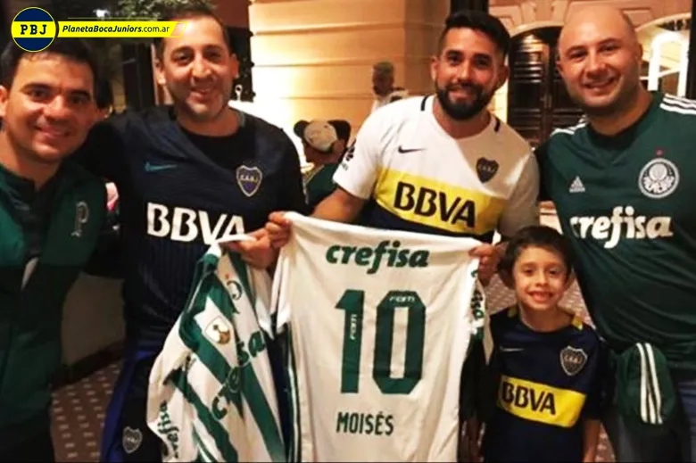 “En el partido de fase de grupos en abril, el día que perdimos 2-0 en cancha de Boca, el partido se jugó muy tarde. Salimos a la una de la mañana y cenamos en Banchero. Cuando salimos, que íbamos a buscar el auto de Kito a la cochera de Almirante Brown, venían dos simpatizantes de Palmeiras y se los veía asustados. Los taxis no le paraban, nosotros los saludamos y le ofrecimos sacarlos de ahí para llevarlos a su hotel. Cuando íbamos en el auto uno de ellos nos contó que era José Inglese, director adjunto del estadio Allianz Parque de Palmeiras. Al llegar a hotel Intercontinental nos hicieron entrar, nos recibió hasta el presidente de Palmeiras y nos regalaron una camiseta“.