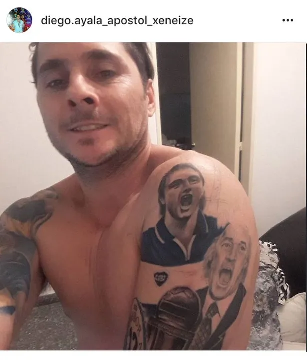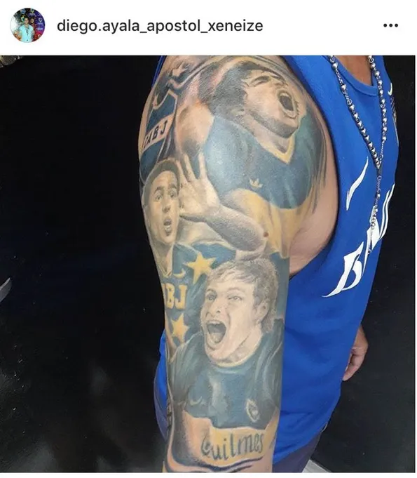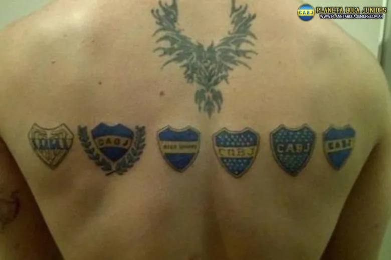 Los tatuajes de este hincha explican el fenómeno del club más popular de la Argentina: en un brazo, Maradona, Palermo y Riquelme; en el otro, Guillermo, Bianchi y las Copas. ¡Mística pura!