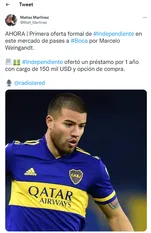 La noticia pasa por el interés de Independiente por uno de los juveniles de Boca. Según contó el periodista Matías Martínez, el Rojo quiere llevarse a Marcelo Weigandt (22) para reforzar el lateral derecho del equipo que tendrá a Leandro Stillitano como entrenador.