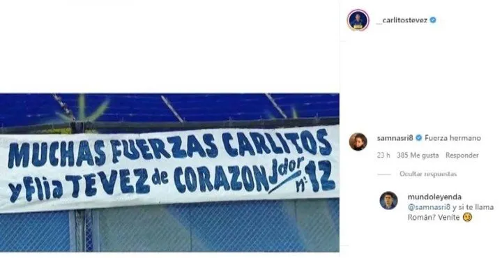 La publicación de Carlos Tevez en Instagram tuvo muchísimos comentarios de apoyo. Entre ellos el de un excompañero que tuvo en el Manchester City.