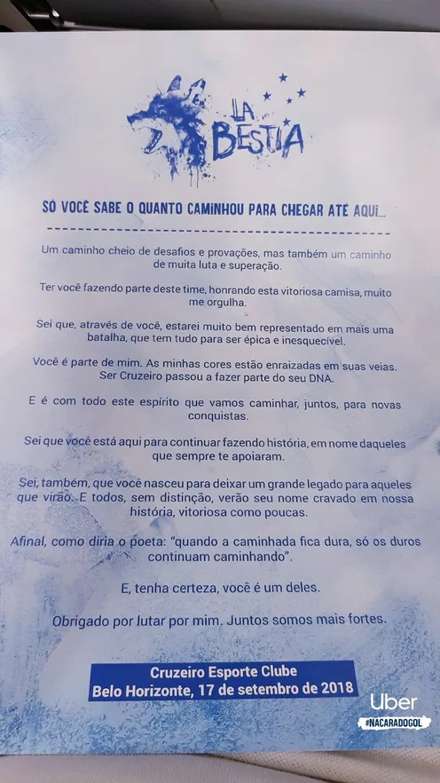 Vos sos parte mía. Mis colores tienen la raíz en tus venas. Ser de Cruzeiro pasó a ser parte de tu ADN.