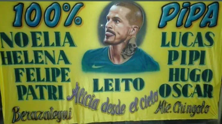 “100% Pipa”, dice del trapo, con el nombre de todos. Incluido un “Alicia desde el cielo”, por su madre. Y los barrios de Berazategui y Monte Chingolo.
