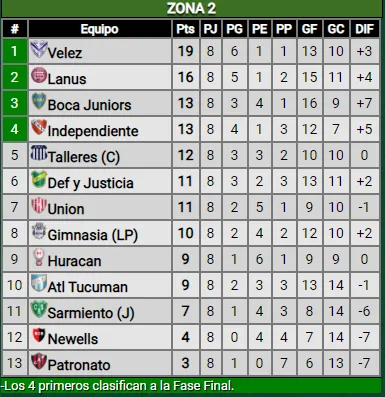 Así está la tabla de posiciones (Fuente: Promiedos)