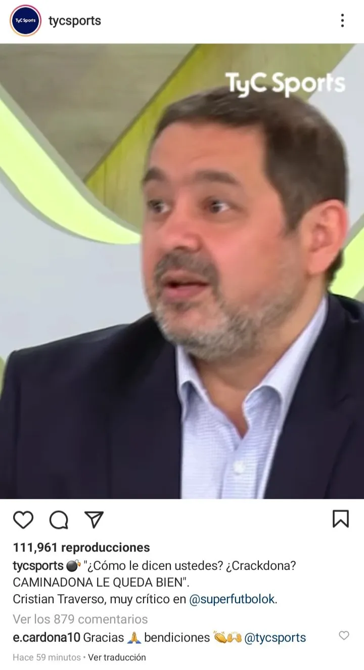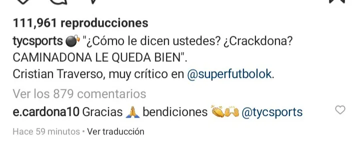 “¿Cómo le dicen ustedes? ¿Crackdona? Caminadona le queda bien”, soltó el exfutbolista del conjunto azul y oro en referencia al apodo que recibe el actual volante del Xeneize. Lejos de meterse en polémica, Edwin comentó: “Gracias, bendiciones”.