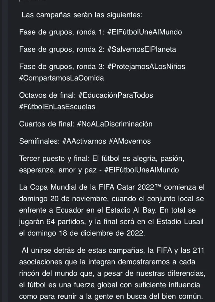 - Fase de grupos, ronda 1: #ElFutbolUneAlMundo