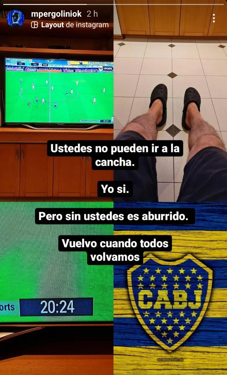 Boca se enfrentaba a Huracán y Mario Pergolini decidió realizar una publicación en su cuenta de Instagram. El vicepresidente primero publicó fotos desde su casa mientras observaba el partido por televisión. ¿Por qué no fue a La Bombonera?