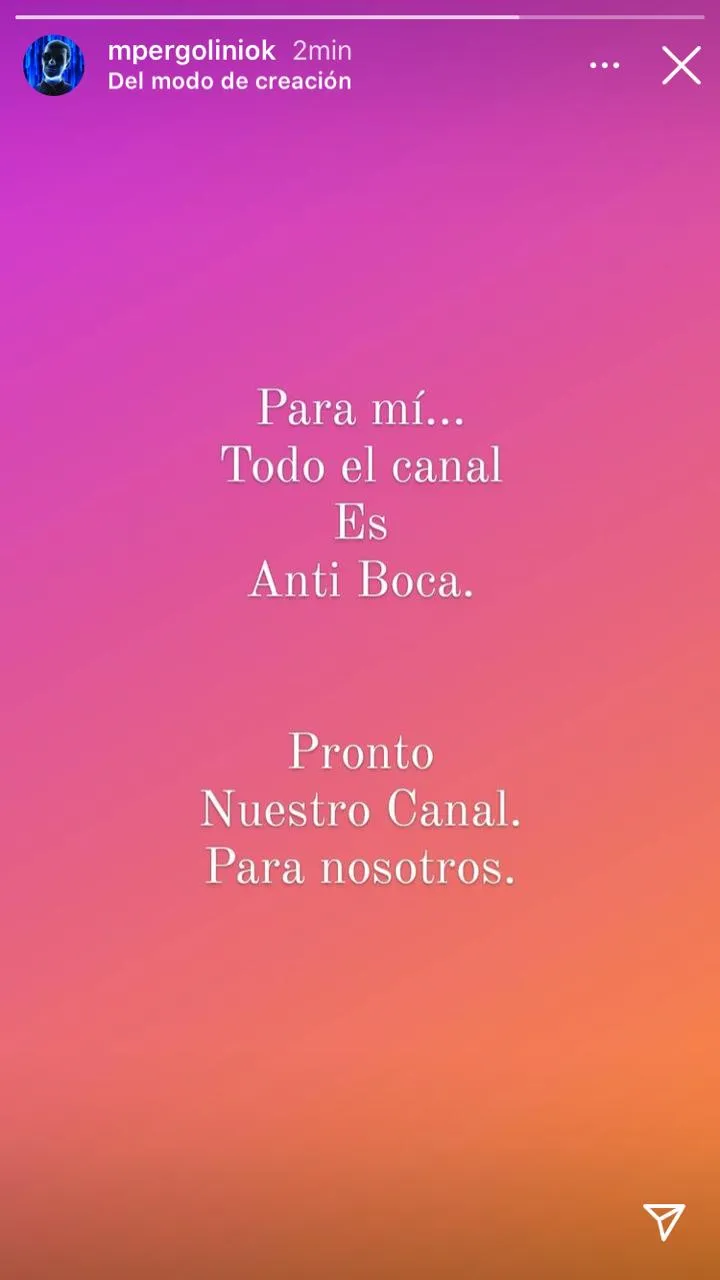 Ahora llegó la respuesta desde Boca. Mario Pergolini, vicepresidente del club, publicó en su cuenta de Instagram: “Para mí… Todo el canal es antiBoca. Pronto, nuestro canal. Para nosotros”.