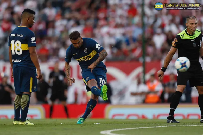Nández a River: el del triunfo. El uruguayo agarró de volea un gran pase de Pérez. Así, Boca se llevó la victoria en el Superclásico.