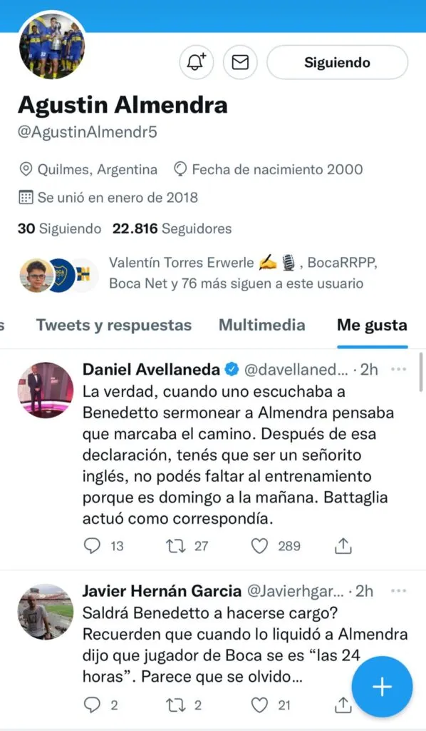 Luego de que la noticia se conociera en los principales medios deportivos, hubo lugar a una segunda instancia relacionada al episodio: los polémicos likes de Agustín Almendra a mensajes que apuntaban directamente contra Pipa.