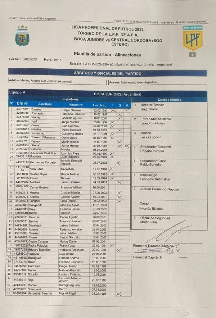 Orsini había jugado contra Atlético Tucumán con la número 27 pero frente a Central Córdoba lució la 33. Ese dorsal iba a ser de Sergio Romero, pero tras la salida de Agustín Rossi el guardameta decidió usar la 1. Con la planilla oficial también se ven otros cambios: la 43 ahora la usa Renzo Giampaoli (la tenía Maximiliano Zalazar, quien se fue a préstamo a Platense). La 27 que usaba Orsini quedó libre.