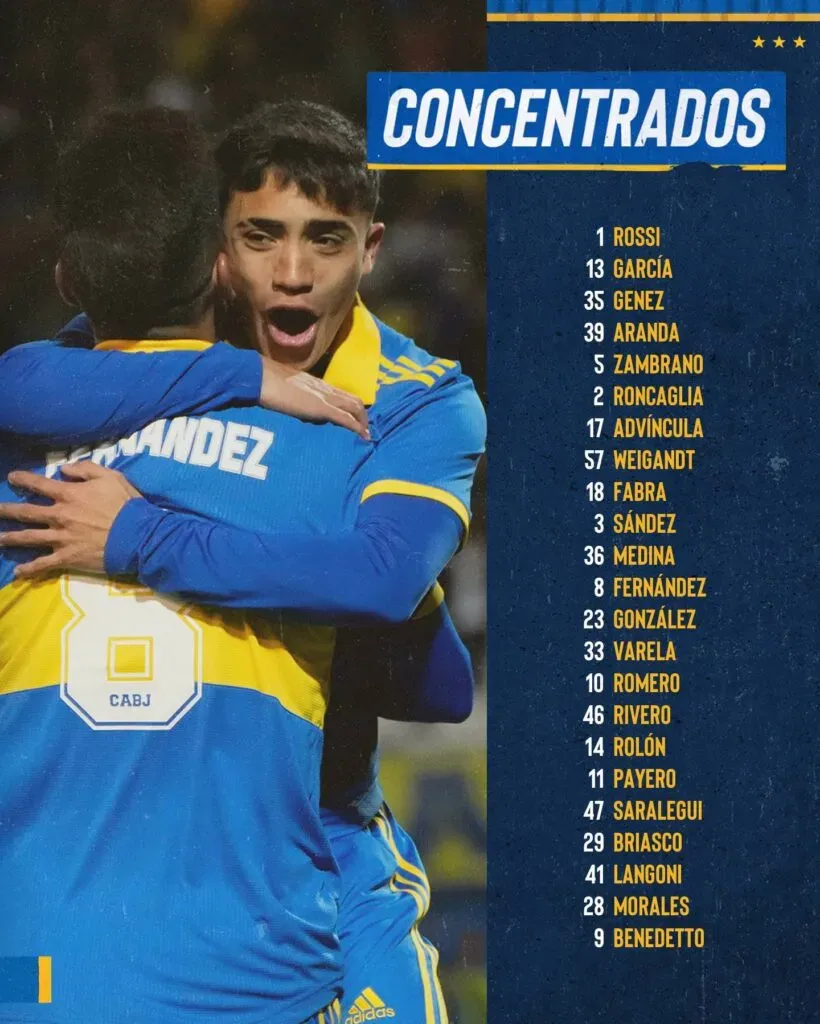 Quien sí aparece en la convocatoria es Luca Langoni. A pesar de que estuvo en duda por un golpe, este martes se entrenó a la par. Este miércoles se definirá si juega desde el arranque. Además, se destaca la presencia de Noberto Briasco y del juvenil Jabes Saralegui, volante de la Reserva, categoría 2003.