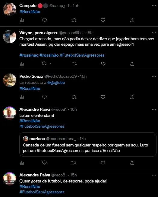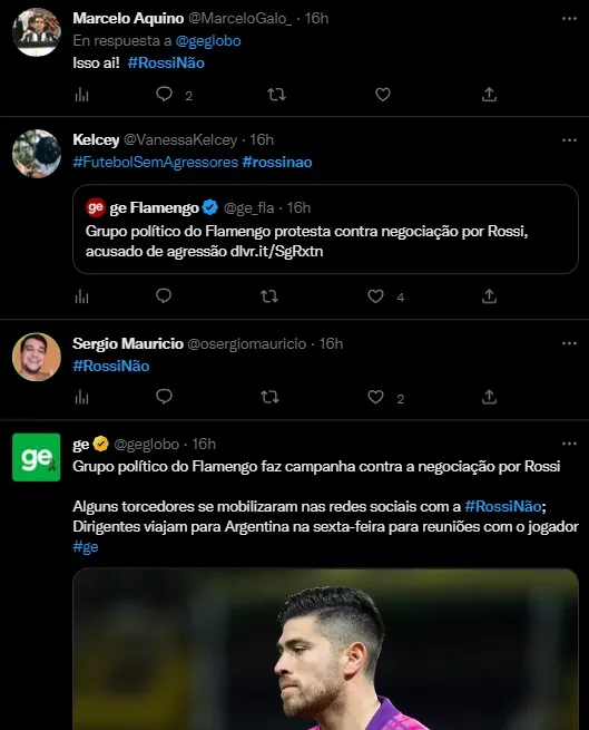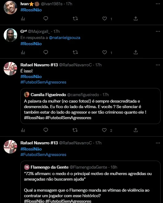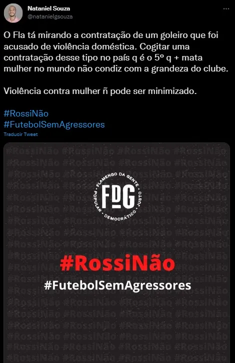 ¿Qué pasó? En Brasil se enteraron que Rossi tuvo una causa por violencia de género en 2017 y por eso se generaron dos tendencias: #RossiNao y #FutebolSemAgressores (Rossi No y Fútbol Sin Agresores). Por ahora no hubo respuesta de los dirigentes del Fla sobre el tema.