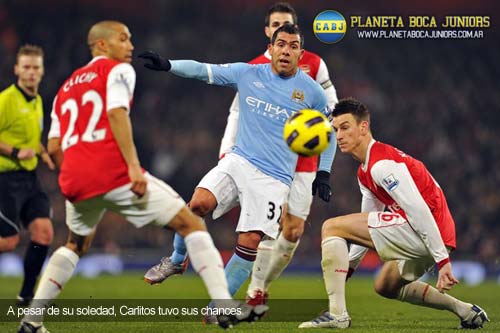 Carlos Tevez jugó como único delantero y el City igualó en cero ante el Arsenal. El ex Boca igualmente se las ingenió para no pasar desapercibido.