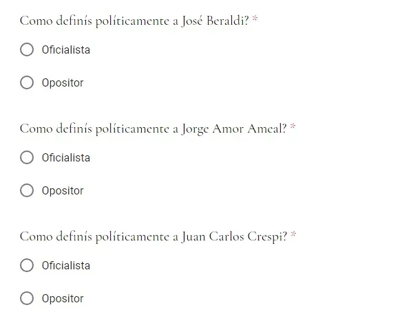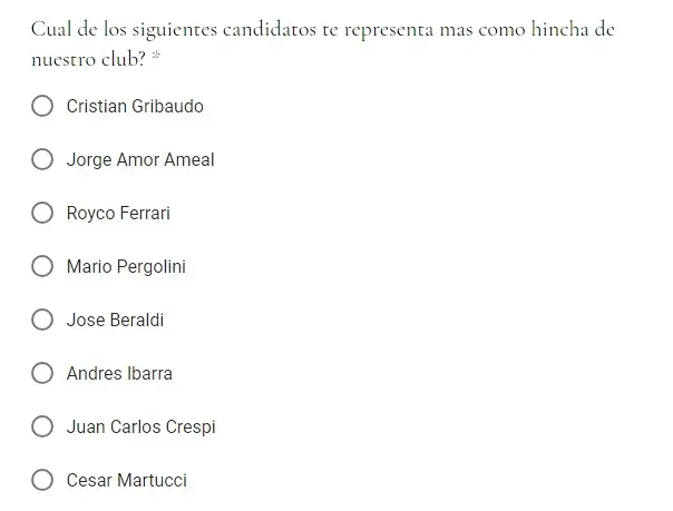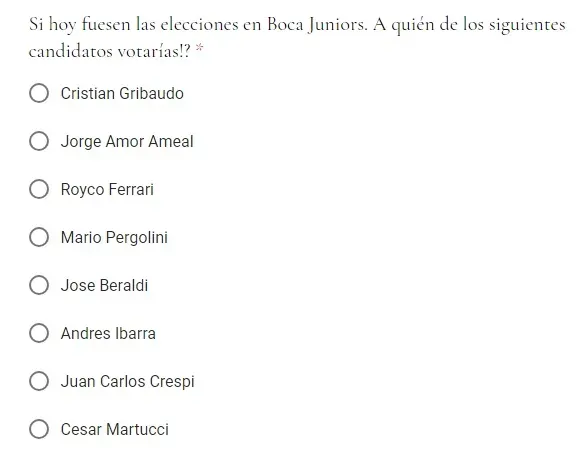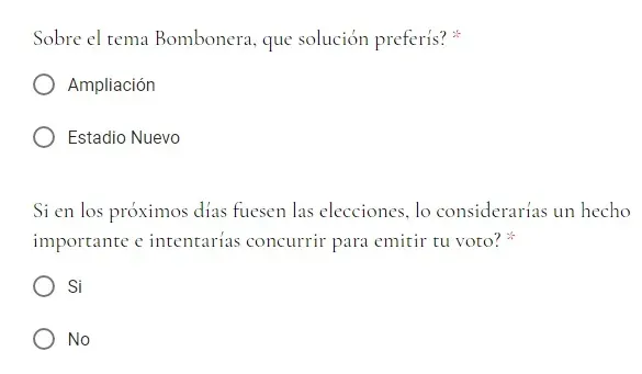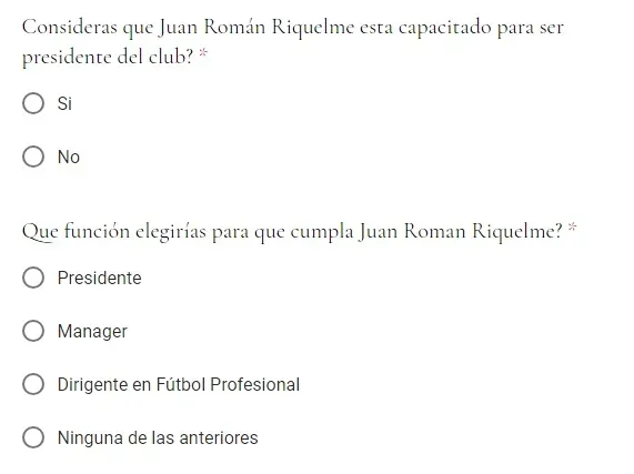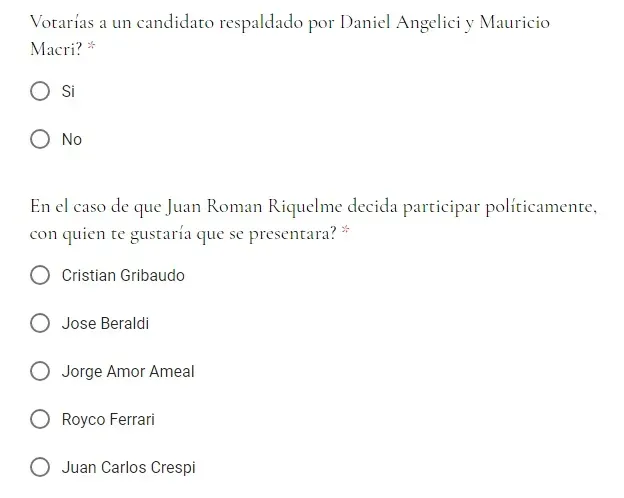 Las preguntas ligadas al ídolo piden opinión sobre con qué aliado político lo verían, en qué rol y hasta saber si para los hinchas está capacitado o no para ser presidente.