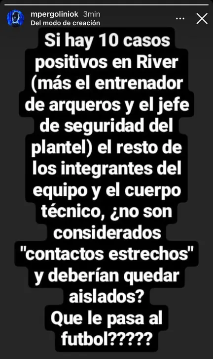 Luego de los mismos, los siguientes jugadores dieron resultado positivo: Paulo Díaz, Federico Girotti, Enrique Bologna, Germán Lux, Robert Rojas, Nicolás De La Cruz, Rafael Borré, Bruno Zuculini, Tomás Castro Ponce y Franco Petroli.