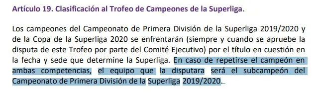 Que si un equipo logra los dos campeonatos, como le pasó a Boca, la final se debe disputar contra el segundo del torneo local (River).