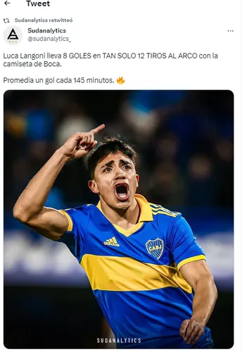 No es noticia la efectividad de Luca a la hora de definir. Pero así y todo el dato es sorprendente: según Sudanalytics, Langoni lleva ocho goles en tan solo ¡doce tiros al arco! en la Primera División del Xeneize. Y un promedio de gol cada 145 minutos. Pide titularidad.