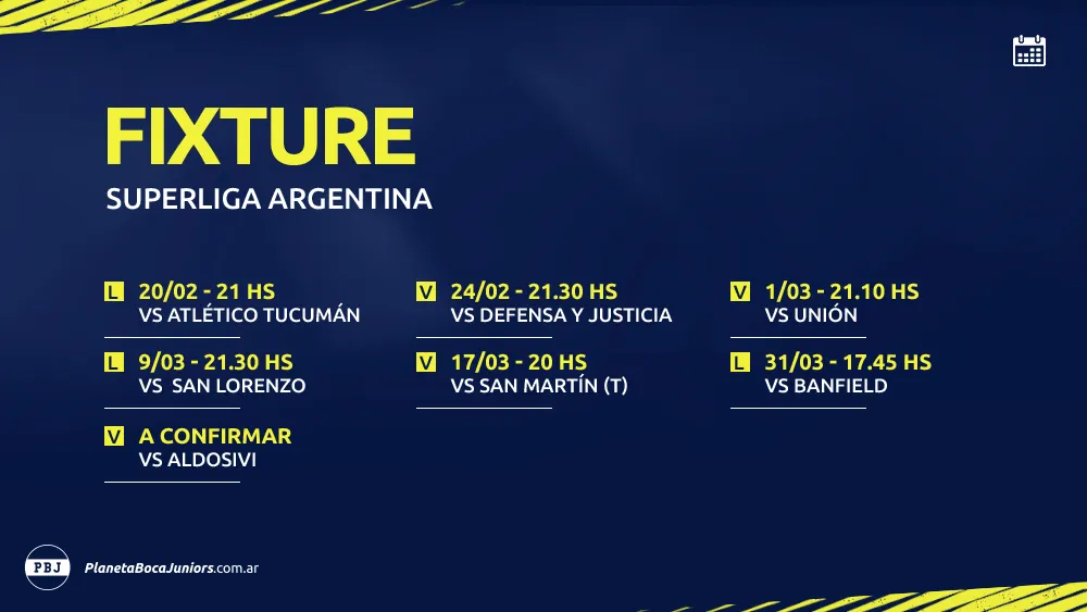 - Fecha 22, ante San Lorenzo (L), por Superliga Argentina – Sábado 9/3, 21.30 hs.