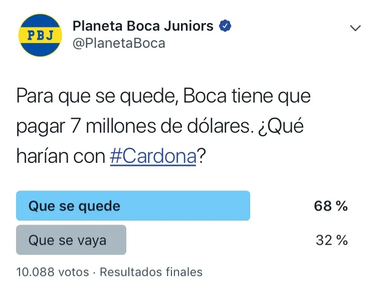 En Planeta Boca Juniors realizamos una encuesta para conocer si la gente quiere que el club compre su pase por siete millones de dólares y los resultados fueron contundentes.