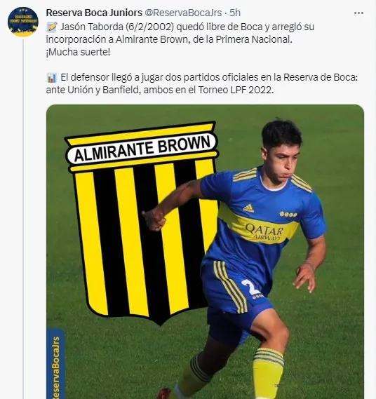 El defensor categoría 2002 acordó su llegada a Almirante Brown, y al no recibir una oferta de contrato, dejó el Xeneize en condición de libre. Sumando continuidad tanto en Reserva como en Cuarta División, integró los dos planteles que se consagraron campeones, disputando 19 encuentros en total y anotando un gol.