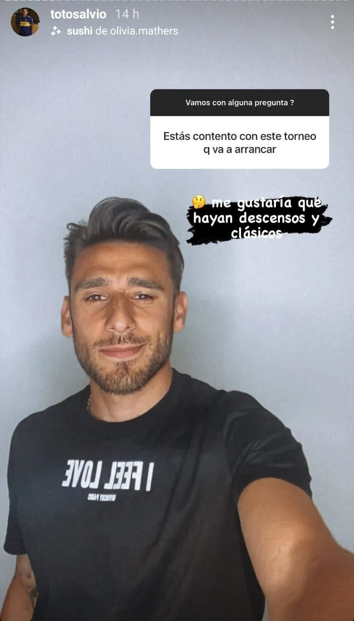 Además, se refirió al campeonato local. Si bien está ansioso por volver a disputar el torneo, admitió junto a un emoji pensativo: “Me gustaría que hayan descensos y clásicos”. También contó que usa la 18 por el nacimiento de su hijo, que su ídolo siempre fue Juan Román Riquelme y que no extrañan a Sebastián Villa porque “lo veo todos los días”.