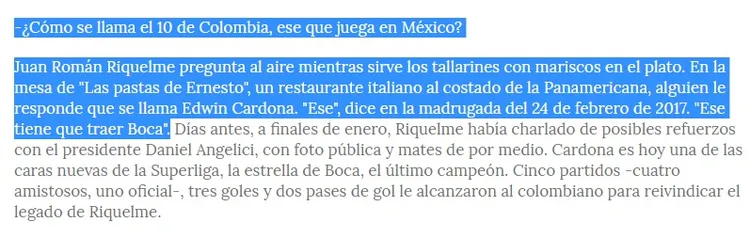 Una historia que se publicó en el Diario Tiempo Argentino hace unos meses, se conoce una historia increíble: el día que Riquelme conoció a Cardona y lo propuso como refuerzo para Boca.