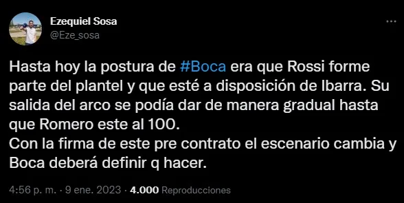 El periodista Ezequiel Sosa reveló que la firma de un precontrato cambia el panorama y dificulta las chances del guardameta. Daniel Fava, por su parte, ya confirma que Rossi no será tenido en cuenta este semestre. Todo indica que es la gran chance para Sergio Romero de quedarse con el puesto. ¿Será el año de “Chiquito”?