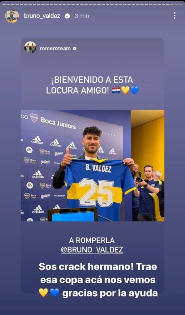 En las últimas horas, el número 10 de Boca se expresó en las redes sociales y le dio la bienvenida pública a Valdez: “Bienvenido a esta locura, amigo. ¡A romperla!”.