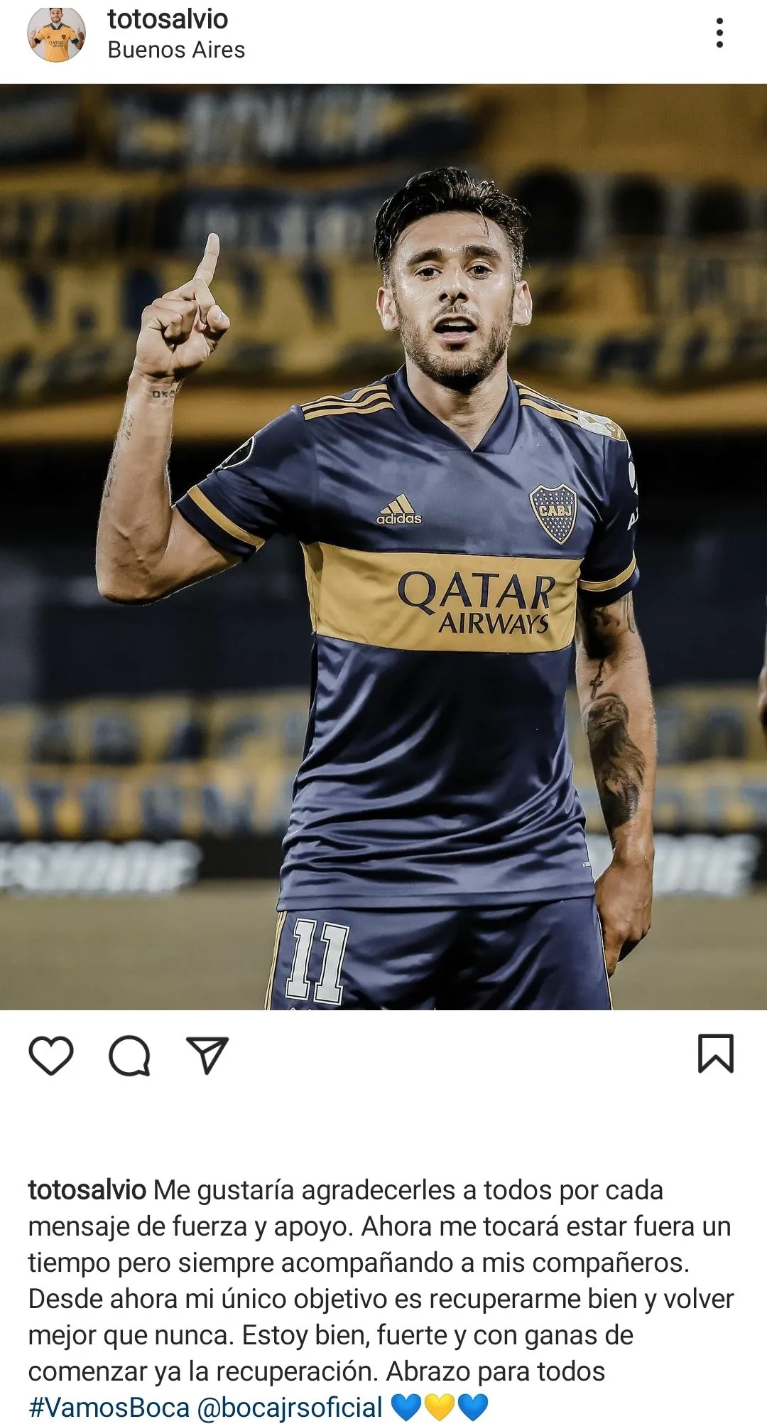 Toto será operado este lunes y tendrá, como mínimo, para 6 meses afuera de las canchas. Repasá su emotivo posteo.