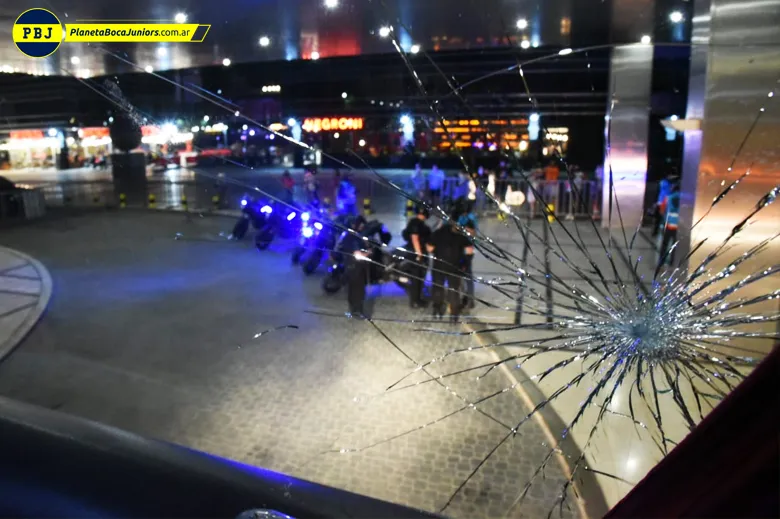 El rival de Boca publicó dos fotos y denunció que el micro del plantel recibió piedrazos cuando llegó al hotel de Buenos Aires. Esto escribieron: