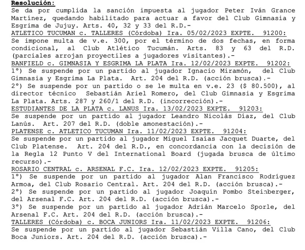 La Asociación del Fútbol Argentino dio a conocer las suspensiones para los jugadores que vieron la tarjeta roja el pasado fin de semana y el colombiano ya sabe que estará una fecha afuera de las canchas.