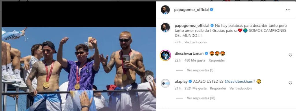 El Papu volvió a ser titular en los octavos de final ante Australia. Pero salió a los cinco minutos del segundo tiempo por una lesión en el tobillo. El jugador había declarado que se trataba de un esguince y no cerraba la puerta a volver a jugar en el Mundial. Sin embargo, su madre, Mónica Villaverde, confirmó que la lesión fue más grave de lo que trascendió.