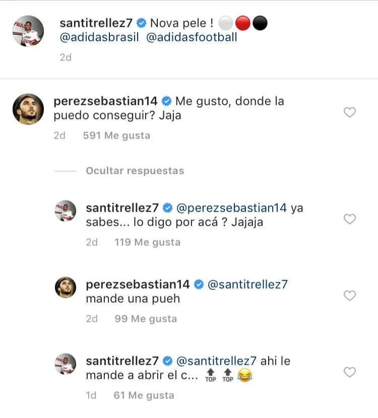 Con él se dio una conversación interesante a través de las redes sociales. Su compatriota presentó la nueva camiseta y el todavía jugador de Boca preguntó dónde la podía conseguir. “Ya sabes… lo digo por acá? jajaja”, le contestó. ¿Será que ya tiene su futuro definido? Mientras tanto, se entrena con la Reserva de Schiavi.