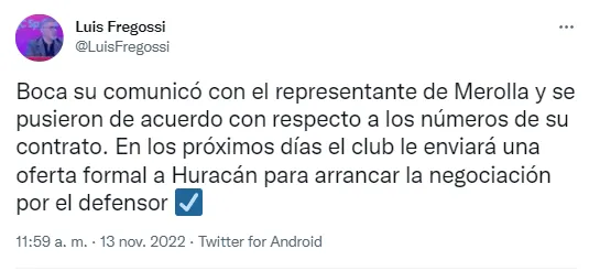 Y ya tendría todo encaminado con la primera opción. Según contó el periodista Luis Fregossi, Boca se comunicó con el representante de Lucas Merolla y “se pusieron de acuerdo con el contrato del jugador”. En los próximas días el Xeneize elevaría una propuesta formal a Huracán para quedarse con el marcador central.