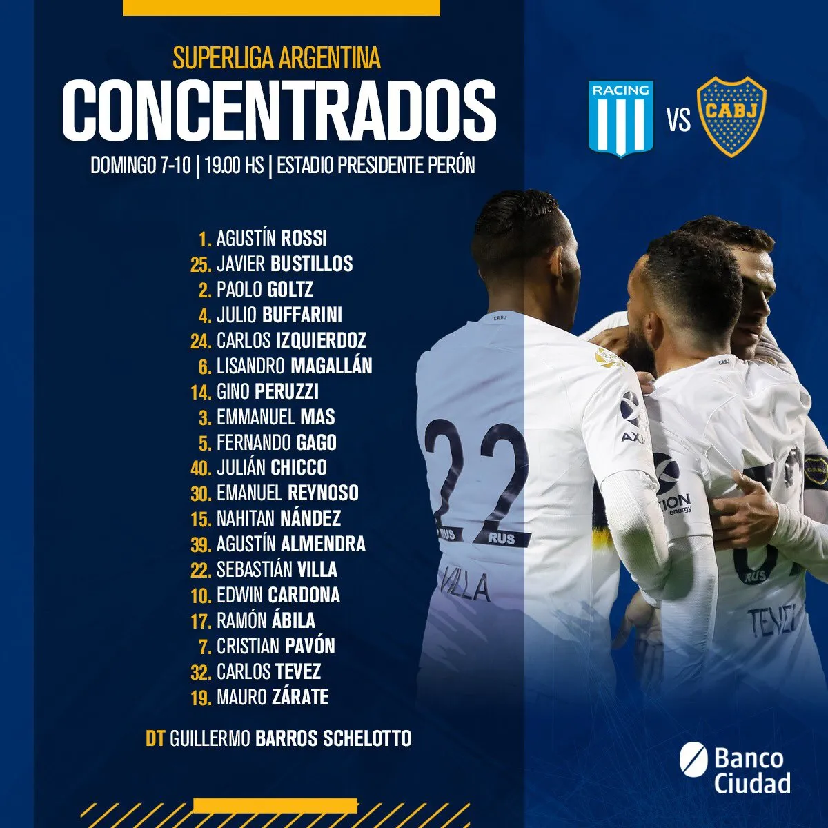 Tres jugadores de Boca no estarán ante Racing. Los nómina completa.