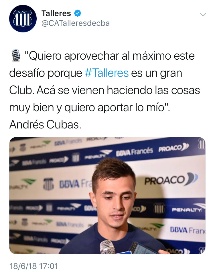 Pero, llegó la sorpresa. Daniel Angelici y Andrés Fassi, presidente de Talleres, negociaron su pase y en las últimas horas se convirtió en refuerzo del equipo cordobés por tres años. ¿De qué forma llega a la “T”? Como parte del acuerdo por Emanuel Reynoso, Boca cede el 50% del volante.