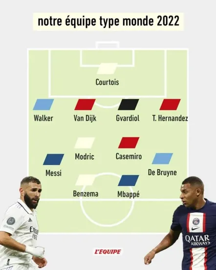 Termina el 2022 y comienzan los balances. También algunos premiaciones y nominaciones individuales. A días de la finalización de un nuevo año, la Revista L’equipe de Francia eligió a su once ideal del último calendario. Con una llamativa novedad… ¡Hay un solo elegido del campeón del mundo!