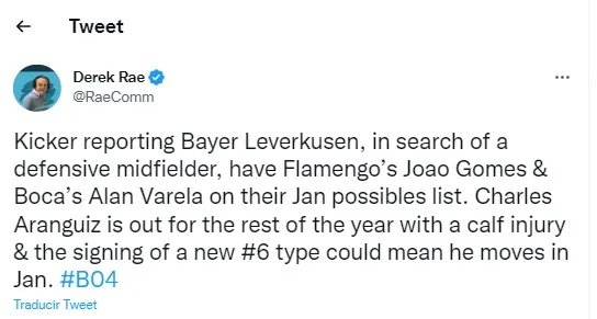 Según informó el periodista Darek Rae, el joven formado en las inferiores xeneizes es seguido de cerca por el Bayern Leverkusen, el conjunto alemán que dirige Xabi Alonso y anda en búsqueda de un mediocampista con características similares a las que tiene el número 33.