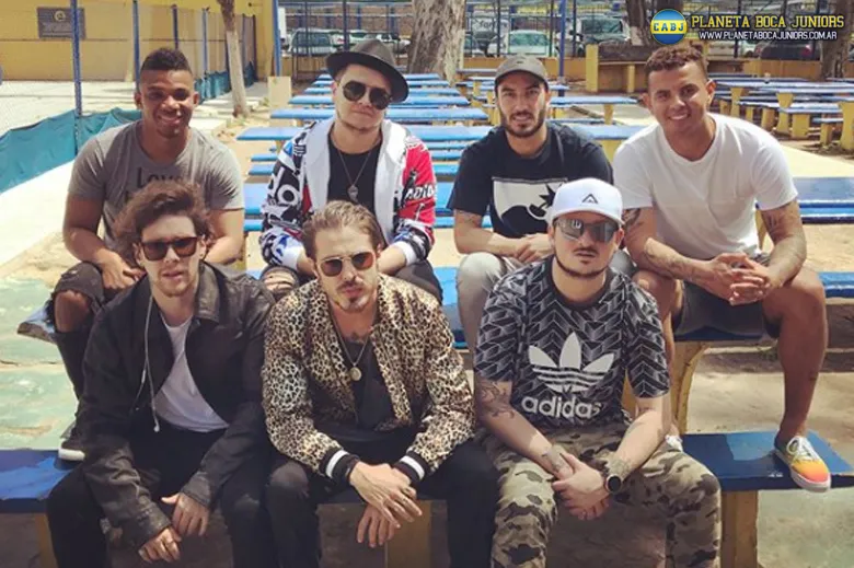 Se trata de la banda Piso 21, grupo de pop latino y reggaeton. Los cuatro integrantes visitaron el estadio de Boca junto a los jugadores y la pasaron genial.