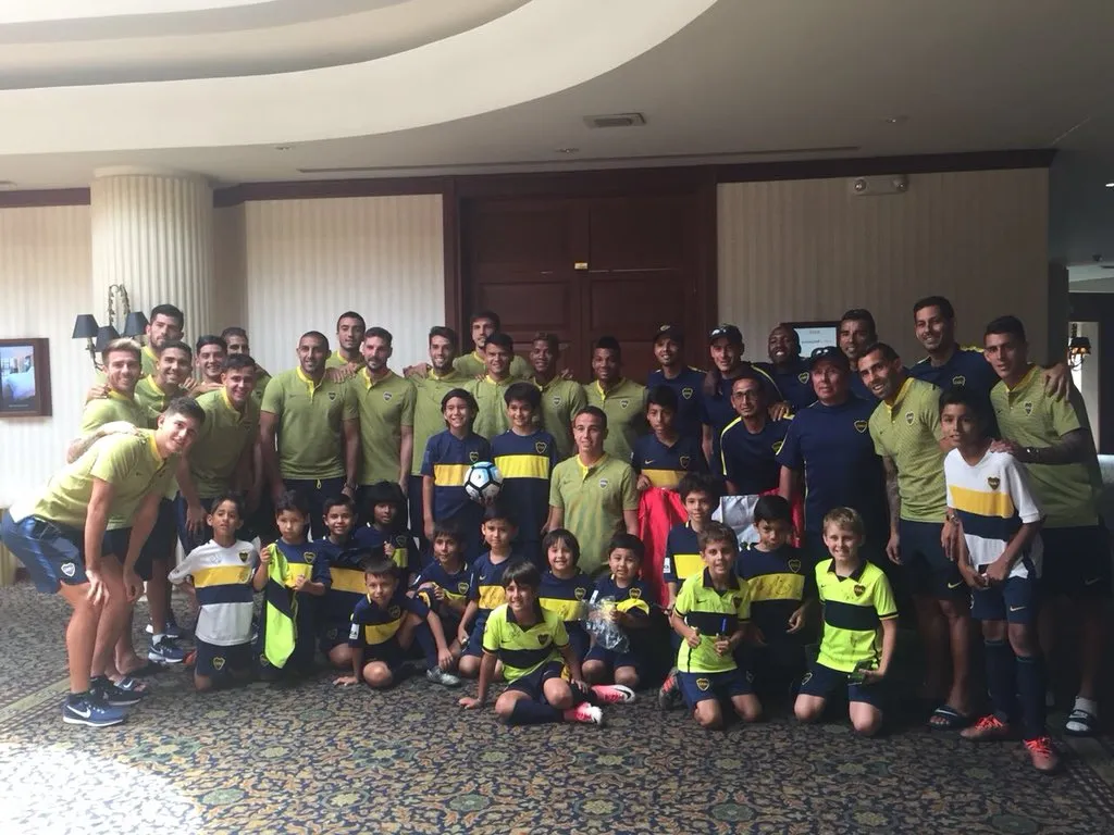Los chicos de la Escuela Oficial de fútbol de Boca en Perú pasaron por el hotel para saludar a los futbolistas. Hubo autógrafos, fotos y algunas charlas. La cuenta de Twitter de la institución mostró las fotos: