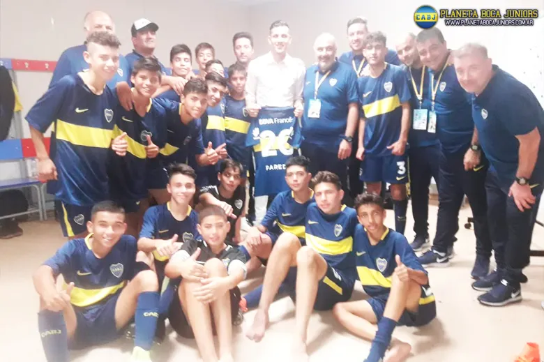 Junto a la alegría por la victoria recibieron una visita muy especial en el vestuario. Leandro Paredes, jugador del Zenit surgido en la cantera del Xeneize, se acercó a ver el encuentro y a saludar a los chicos en el predio de San Petesburgo.