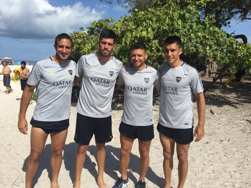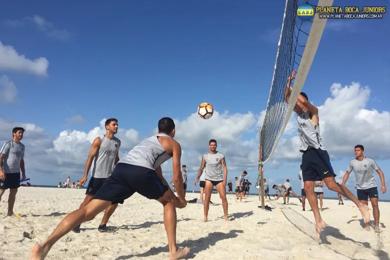 Para relajar los músculos y descansar un poco, el preparador físico Javier Valdecantos armó una jornada recreativa en la pretemporada de Boca. El plantel fue a la playa y armó un torneo de vóley.