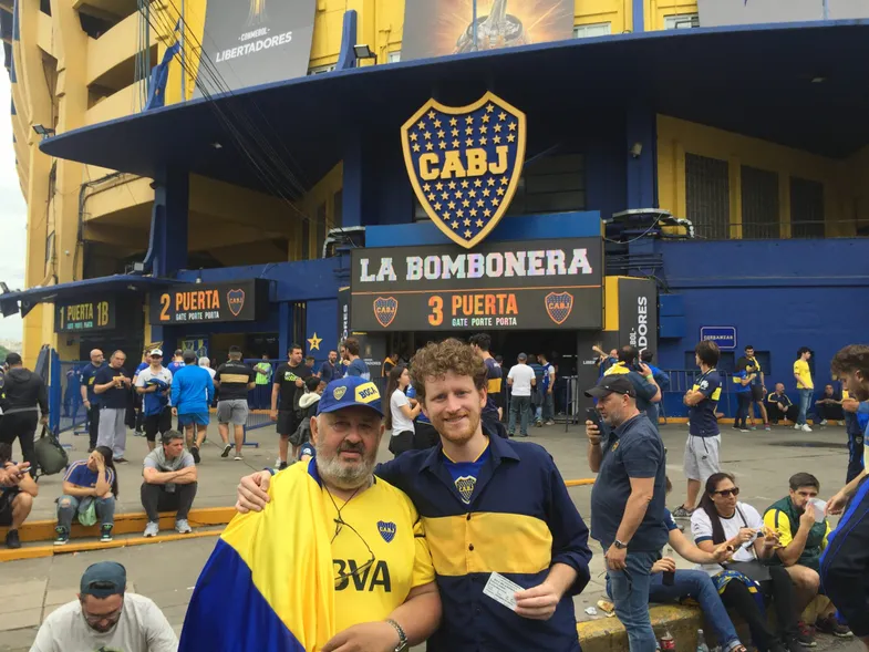 El itinerario, sin querer, obligaba a llevarlo a la puerta donde habíamos entrado a nuestro primer partido en el templo, en el 2001. Aquella vez también una final. En aquel entonces, los mismos nervios. Parecíamos dos turistas japoneses, sacando fotos a cada rincón. Por más que no hay cámara que aguante ante tanta, tanta pasión y tanto amor.