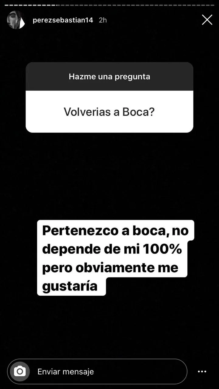 Pero en la noche del miércoles, a través de Instagram, dejó en claro sus deseos. Ante la pregunta de si volvería al Xeneize, no dudó: “Pertenezco a Boca, no depende 100% de mí, pero obviamente me gustaría”.