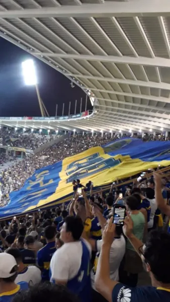 Hay un calentamiento previo, de piernas de los jugadores, de gargantas de la gente. Que se intensifica cuando entre trompetas y bombos se jura que “lo sigo a Boca Juniors donde va”; hay aplausos para los jugadores cuando terminan de hacer ejercicios precompetitivos y manos que explotan cuando salen, para comenzar a competir en la Copa. Hay algunos trapos de Central Córdoba de Rosario y muchos, muchísimos más desde Buenos Aires y de todas partes del país.
