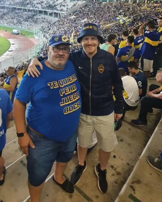 Está su amigo, con su padre que lleva una remera que dice “Te quiero, pero juega Boca”. Ese amigo que aprovechó la fiesta de ese casamiento para casarse también, pero con el Club de sus amores. Están Juanjo y Ale, festejando una amistad por y gracias a Boca. Está Rubén con su hijo, festejando una vez más ese lazo interminable e interrumpible. Porque “ni la muerte nos va a separar”.