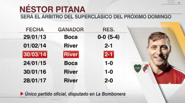 El historial entre Boca y River con Pitana de árbitro (ESPN):
