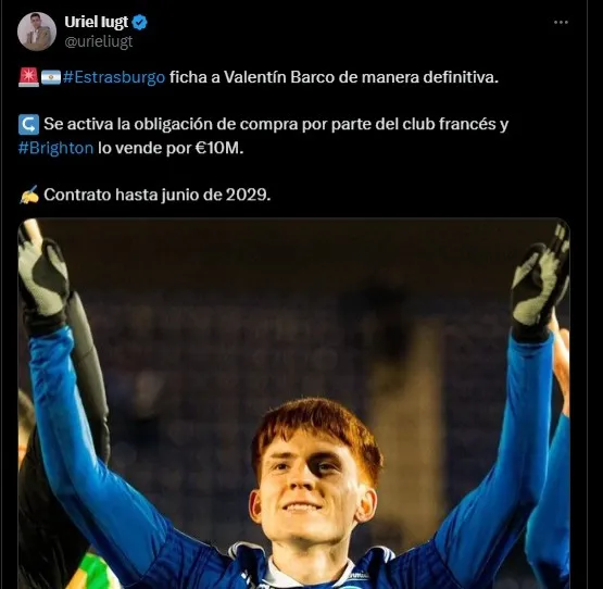 Ahora, se reveló que el Racing de Estrasburgo compró finalmente el pase del Colo Barco al Brighton inglés en una cifra millonaria. Y tras esto, una parte del dinero ingresará en el Xeneize.