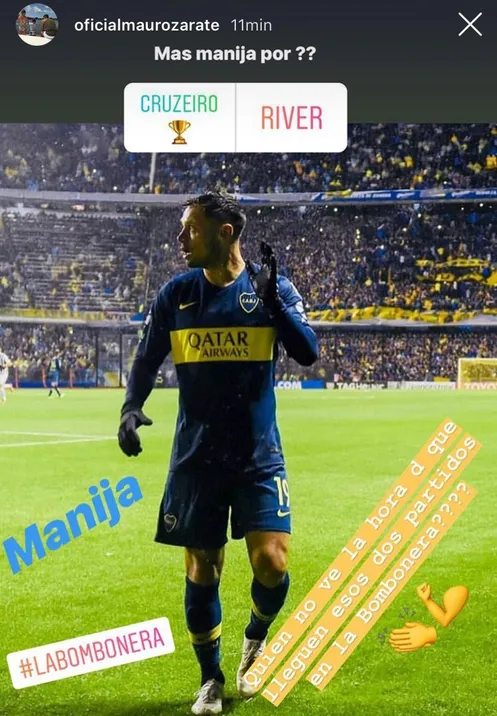 Esa “supersemana” ya empieza a generar ansiedad. Al menos eso es lo que siente Mauro Zárate. “Manija”, puso el delantero para describir su estado. “¿Quién no ve la hora de que lleguen esos dos partidos en La Bombonera?”, preguntó.