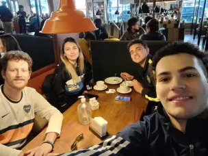 Pero ahora es con gente, nuestra gente, somos los dueños de la fiesta y hay que hacerlo valer. Ahora es con nuestra gente, como “Charly”, que lo único que tiene es una sonrisa que anticipa algo: será un buen viaje. Además de las charlas de Boca, salen las de familia, pero también las cábalas. Se sabe que la camisa negra y blanca será usada si en el primer tiempo Boca no va ganando, pero también se pensaran nuevas estrategias. Por ejemplo, dónde almorzar, ya que la última vez que él fue a Los Campeones, el resultado no fue el esperado. Pero quedan muchas horas de viaje, hay cuarteto, fernet, gente que se arma una picada. Falta mucho para el almuerzo, lo mejor sería descansar. Aunque eso es un decir, para peor, el posible sueño se corta con señales que uno busca hasta en donde no las hay. Frenar en el “Parador 9” de Villa María, pretende ser lo esotérico para explicar que Darío Benedetto pueda convertir y “reivindicarse”.